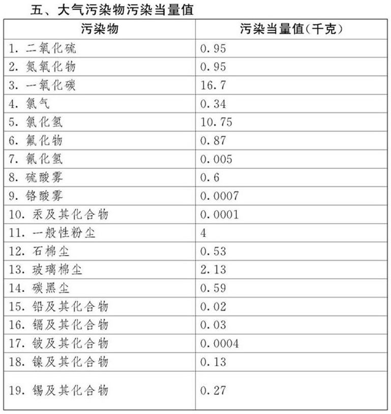(截取于《环境保护税法》附表二)